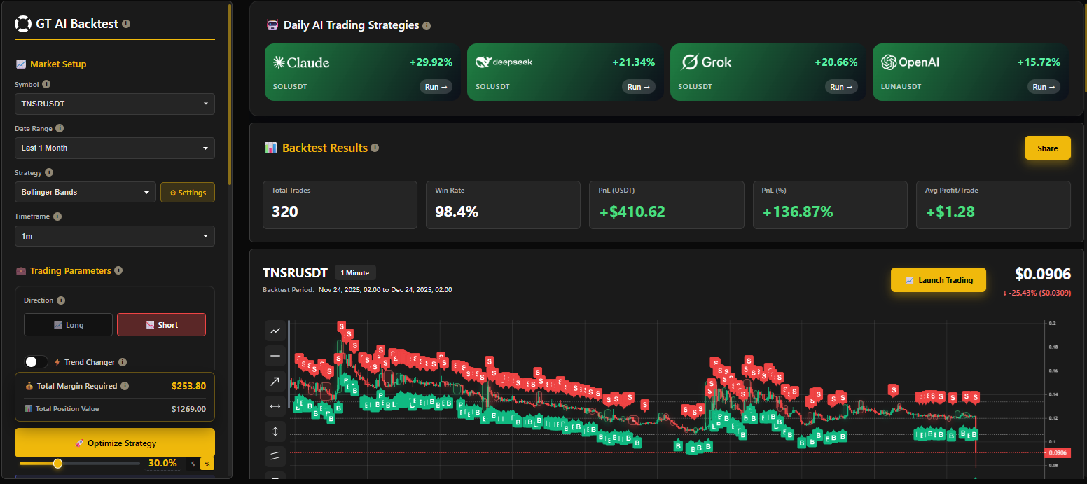Any changes here immediately recalculate the backtest results and are displayed on the right.